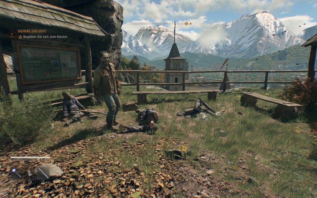 دنیای بازِ Castor Woods محیط جدیدیه که تمام مدت در اون دنبال انتقامگیریت هستی، و ترکیبی از عناصر آشنا در نسخههای قبلی Dying Light رو در قالبی جمعوجور و منسجم ارائه میده. این منطقه شامل ناحیههای روستایی باز شبیه به بستهی الحاقی The Following و همچنین شهرهایی سنگی و چندلایه برای پارکور و بالا رفتنه.