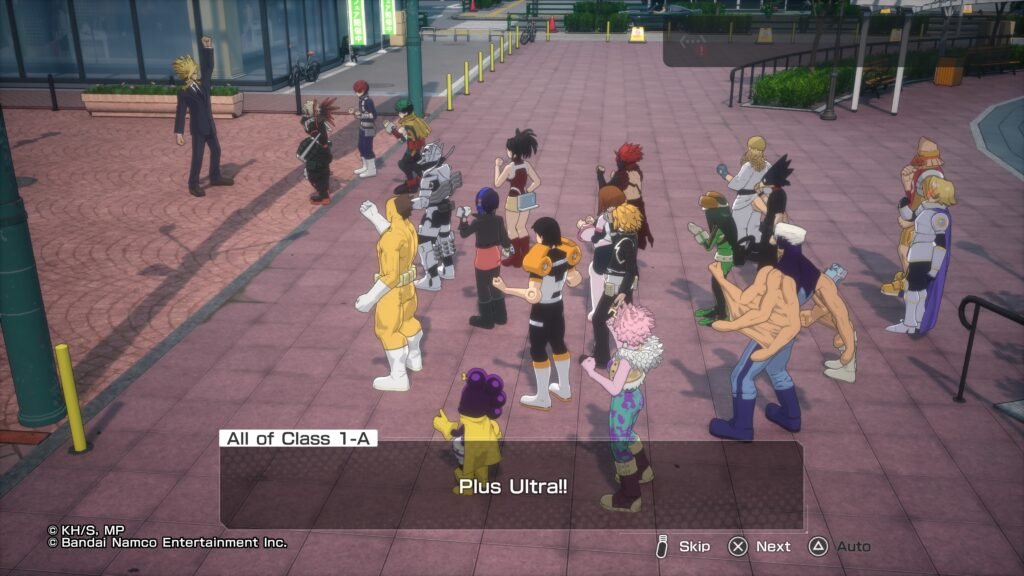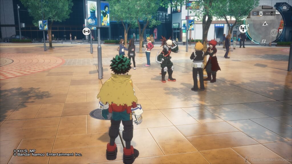 بازیکنان در شهری نیمهباز حرکت میکنند که به بخشهای مختلف تقسیم شده و شامل ماموریتهای اصلی و جانبی، جمعآوری کارتها و تعامل با شخصیتهای پشتیبان است. سیستم Hero’s Diary امکان تجربه زندگی روزمره شخصیتها و بازسازی لحظات مهم انیمه را فراهم میکند و حس حضور در دنیای داستانی را تقویت میکند. منوی موبایل درون بازی دسترسی آسان به ماموریتها، تمرین، نبرد آزاد و تعامل با شخصیتها را ممکن میکند. محیط بازی پر از جزئیات و فعالیتهای جذاب است و هر منطقه جدید حس کشف و تازگی ایجاد میکند. این طراحی باعث میشود بازیکنان ساعتها سرگرم کاوش و تجربه فعالیتهای متنوع باشند.
