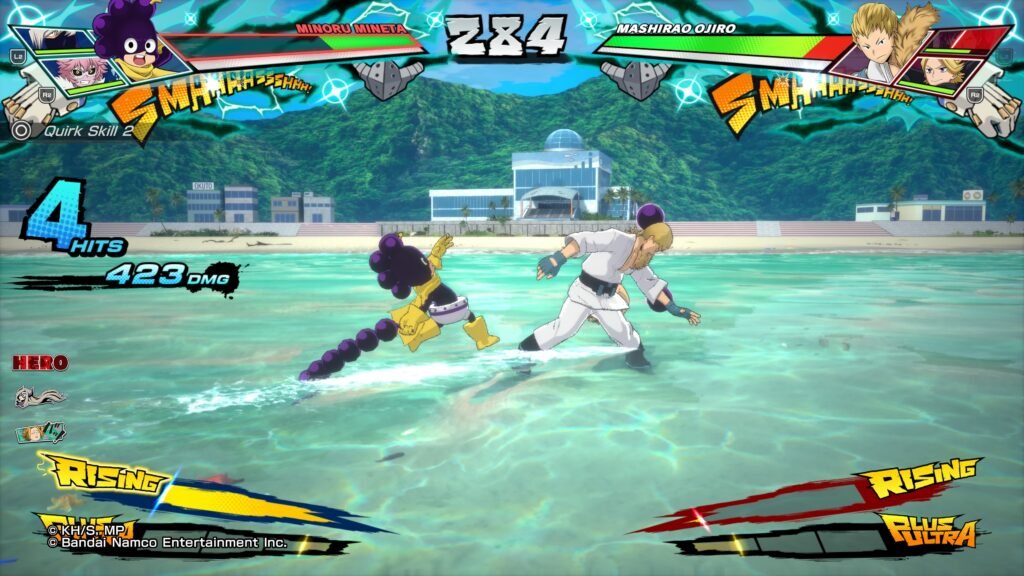 سیستم مبارزه بازی شامل دو حالت است: Normal برای تازهکاران که برخی حرکات بهصورت خودکار انجام میشوند و Manual برای کنترل کامل بازیکن بر حرکات شخصیتها. نبردها شامل ترکیب حملات، حرکات Dash، دفاع، تواناییهای ویژه Plus Ultra و تغییر همتیمی است که تاکتیکهای مبارزه را منعطف میکند. بازیکنان میتوانند حرکات و مهارتها را بهصورت استراتژیک ترکیب کرده و هر مبارزه تجربهای منحصر به فرد ارائه دهد. سیستم کمبو و حرکات ویژه باعث ایجاد تنوع بالا در مبارزات و هیجان برای بازیکنان حرفهای میشود. استفاده درست از Plus Ultra و مهارتها میتواند جریان نبرد را به نفع بازیکن تغییر دهد و استراتژیهای متنوعی ارائه کند.